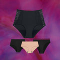 Kuukautisalushousujamme voit käyttää uudestaan ja uudestaan, aina kun sinulla on kuukautiset. Housut ovat imukykyiset ja lukitsevat vuodon sisäänsä – ei ohivuotoja, hajuja tai epämukavaa tunnetta. Suojaa jopa 12 tunnin ajan!